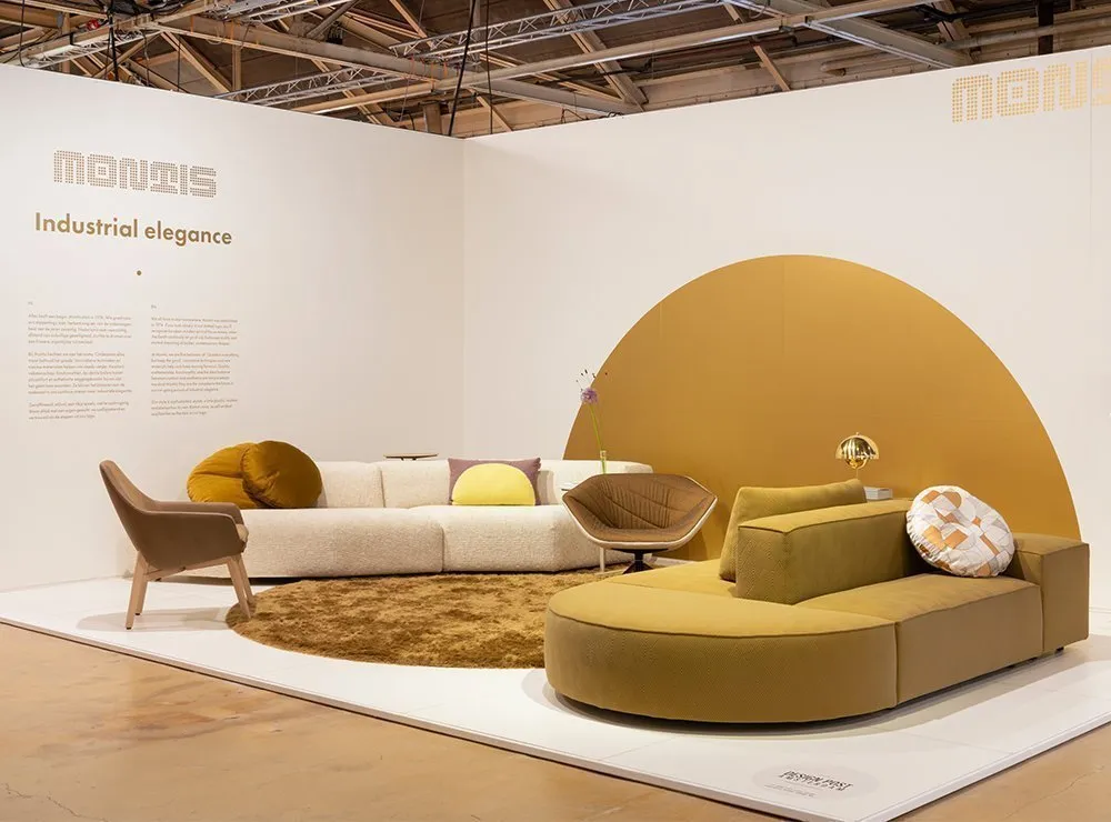 De stand van Montis stond volledig in het teken van het thema ‘The Morning Sun’: een prachtige mix van warme tinten waarbij geel-, bruin- en goudtinten de boventoon voerden. Ook Leolux en Linteloo lieten zich van hun beste kant zien, zij toonden zowel nieuwe designs als enkele gerenommeerde modellen.