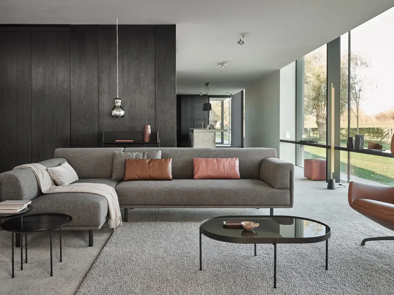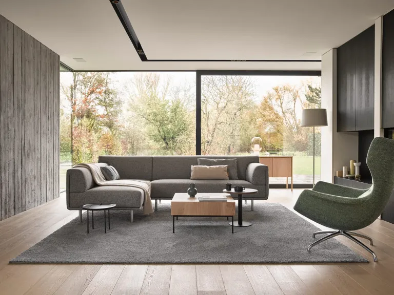 Deze compacte, uitnodigende bank zit net zo comfortabel als hij eruitziet. Dura is een echte allemansvriend die in tal van stoffen verkrijgbaar is. Fraai detail is de inkeping in de poten, die een verwijzing is naar de lijnvoering van de bank. De serie Dura – geschikt voor elk interieur – bestaat uit een bank, hoekopstelling met chaise longue of dormeuse en een poef.