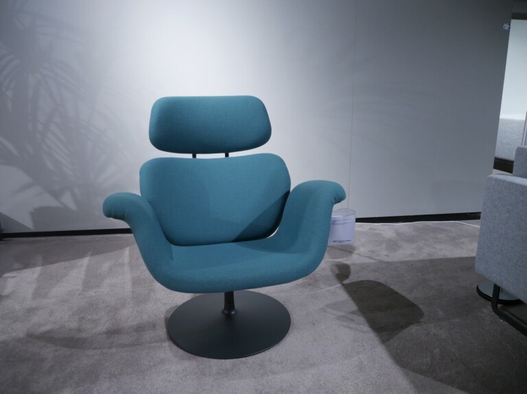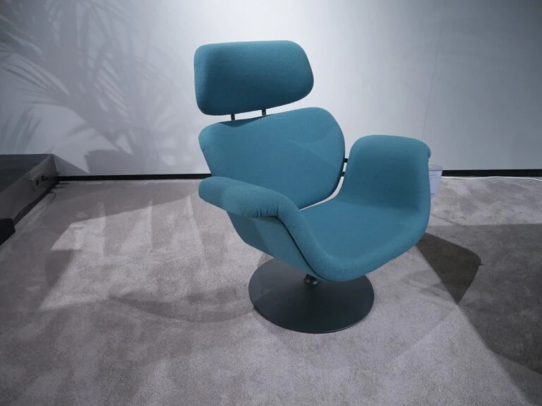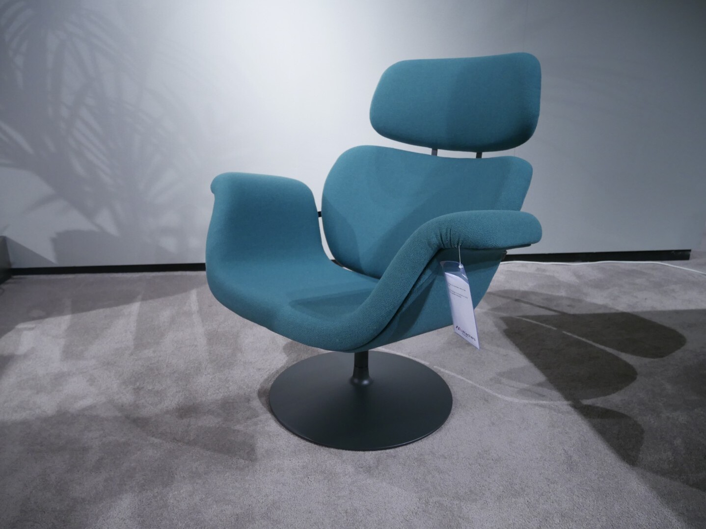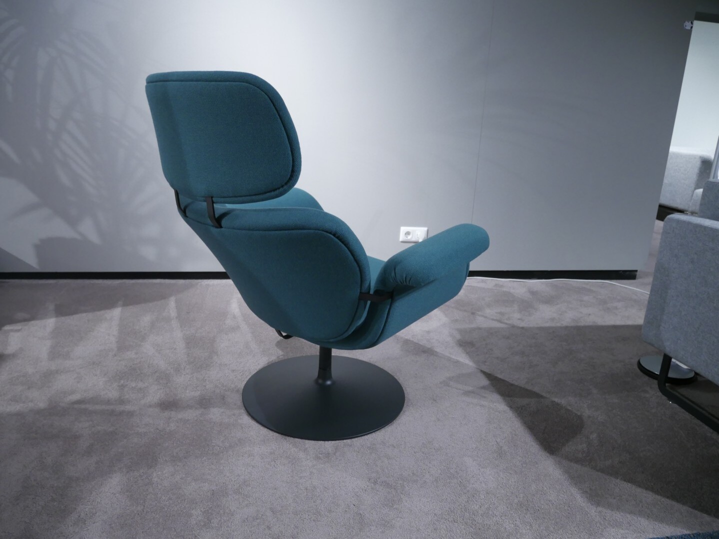 Deze karaktervolle draaifauteuil van Artifort, model F545, hebben wij in de opruiming. Hij is iutgevoerd in de stof Main Line Plus AA in de kleur Mermaid IF 231