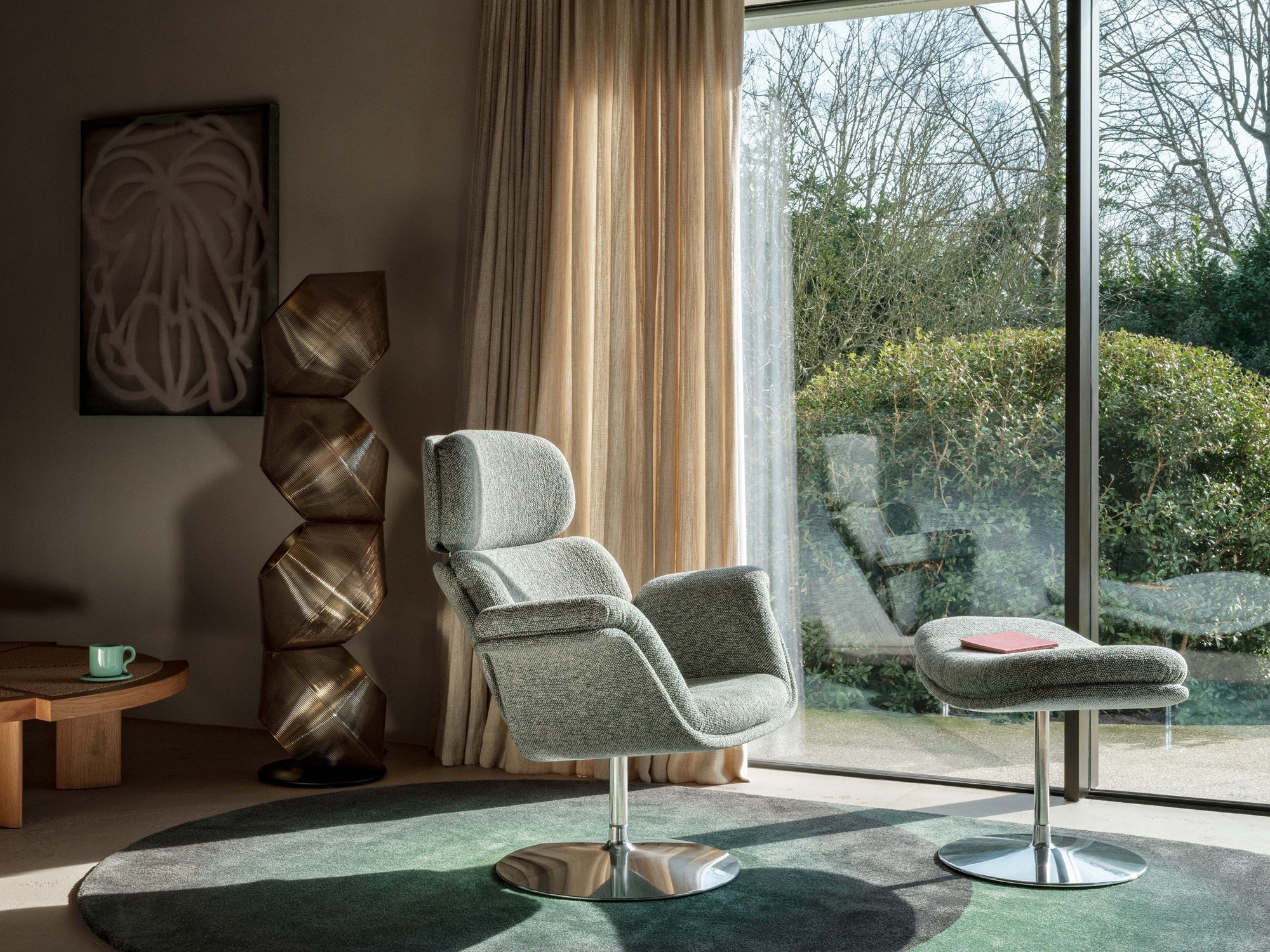 De Tulip F550, ontworpen door Pierre Paulin, is een echte midcentury modern klassieker. Een perfecte samensmelting van elegantie, lounge comfort en innovatie, maakt deze expressieve lounge fauteuil veelzijdig en ergonomisch. Geïnspireerd door de zachte welvingen van tulpenbladeren, omsluit de sculpturale vorm de zitter op een natuurlijke en ondersteunende manier. De royale lagen zitschuim zorgen voor een natuurlijk gevoel van ontspanning. Even tijdloos als bij zijn introductie in de jaren ’60, belichaamt de Tulip-collectie nog steeds Paulin’s kenmerkende visie op organisch en functioneel design. Artifort verwelkomt in 2025 de zachte loungefauteuil Tulip F550 met trots terug in haar vaste collectie en viert daarmee zijn blijvende elegantie en iconische status in de designwereld.