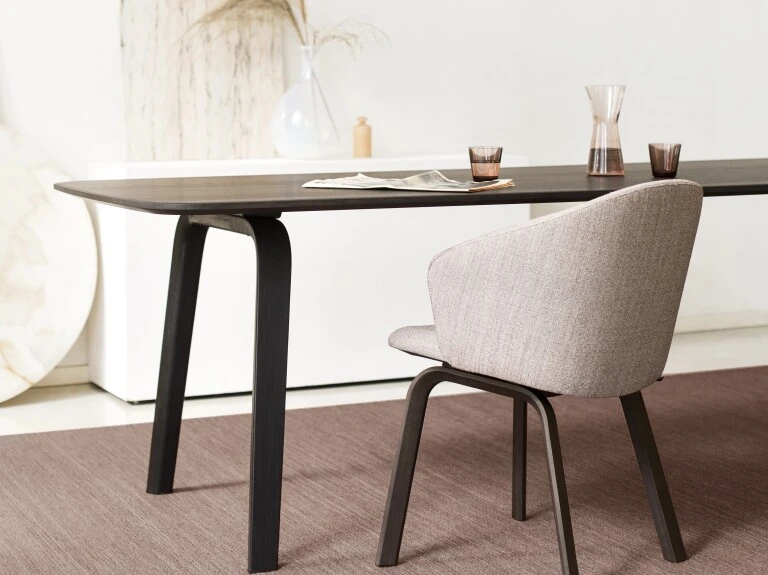 De eetkamertafel Essential van Arco, kan uitgevoerd worden in eiken en noten, eventueel geolied. Het eiken kan in allerlei beitstonen worden uitgevoerd. Als extra optie is het ook mogelijk het blad te laten bekleden met Fenix of Forbo Linoleum. (alleen mogelijk op recht tafelblad niet in Barrel vorm) De tafel is mooi te combineren met eetkamerstoelen of eetbank Close, ook van Designer Gudmundur Ludvik.