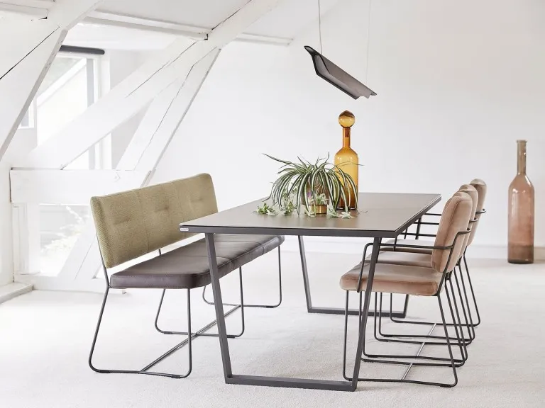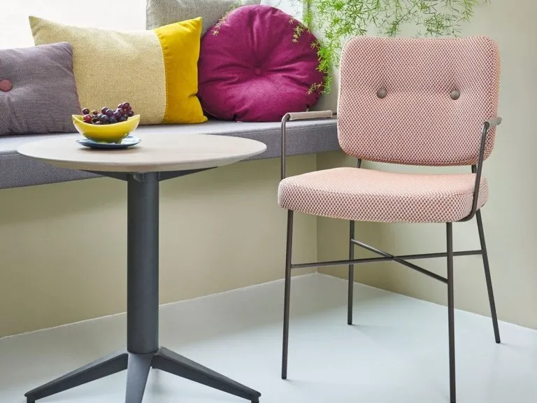 De Kiko Plus eetkamerstoel met de luxe volle stoffering zorgt voor extra body en daarmee comfort. Voeg een persoonlijke noot toe door te kiezen voor een speels detail zoals de ingetrokken naad of sierknopen.