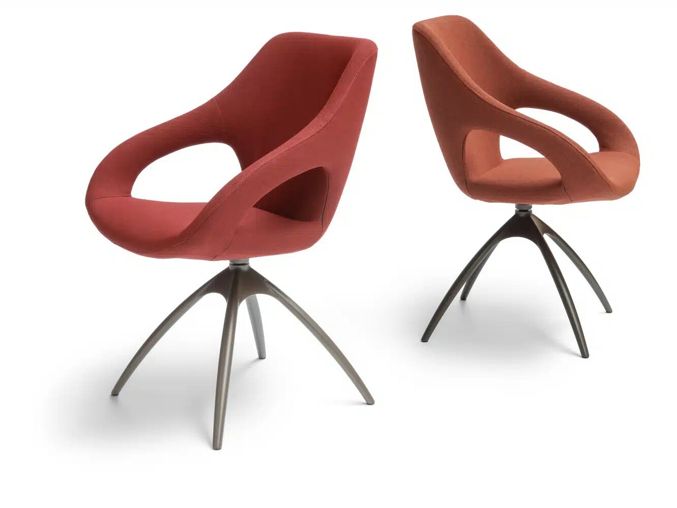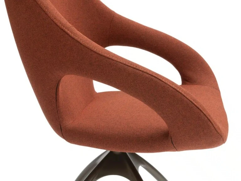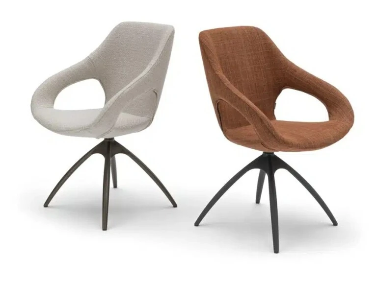 De Quby eetkamerstoel van van Bree, heeft een organische open vormgeving met een rank altijd draaibaar onderstel. Met een gekleurd onderstel in een wenskleur, kan de comfortabele Quby je interieur een moderne twist geven. ( alleen in stof verkijgbaar)