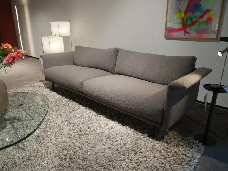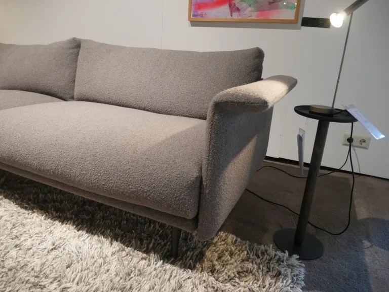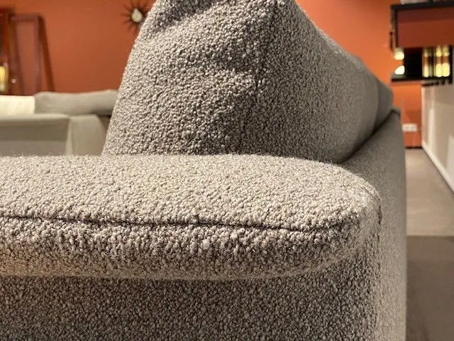 Deze 4-zitsbank Otis is in de opruiming in stof Orsetto 12, een buingrijze kleur. De pootjes zijn van aluminium die matzwart gelakt zijn, en het zitcomfort is extra soft. De maat van de bank is 252bx 88dx81h.