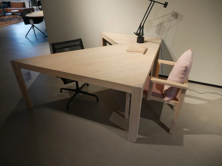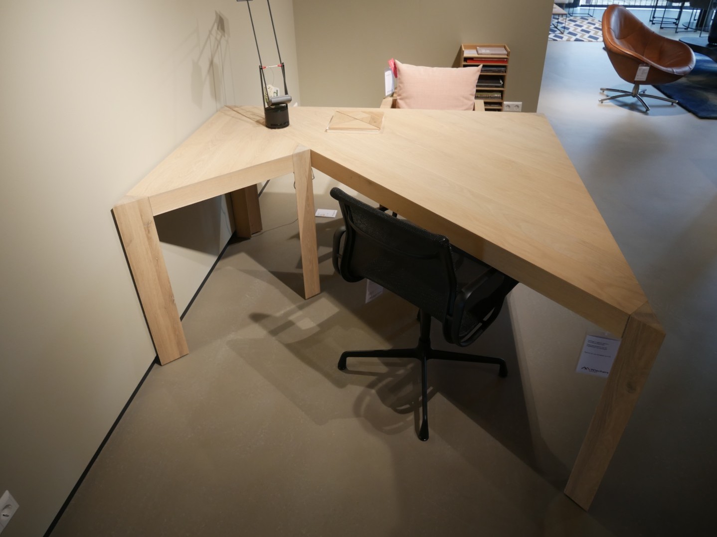De eettafel/werkplek/bureau is gemaakt van massief eiken en afgewerkt in de olie wit/zeep wit.