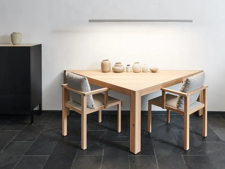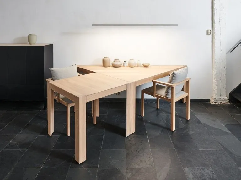De tafels zijn afzonderlijk van elkaar maar ook in allerlei verschillende opstellingen te gebruiken, thuis en in projecten. Van tiny-house tot op kantoor: Kodama past zich aan elke wens en situatie aan.