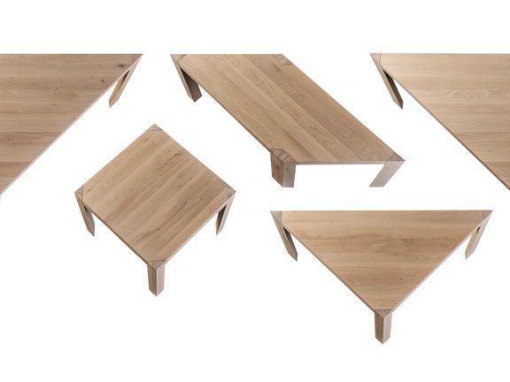 ‘Kodama’ is een set tafels in verschillende geometrische vormen: een systeem van zeven (5 verschillende) los verkrijgbare elementen. Samen vormen ze een vierkant, net als in het Oosterse puzzelspel Tangram.